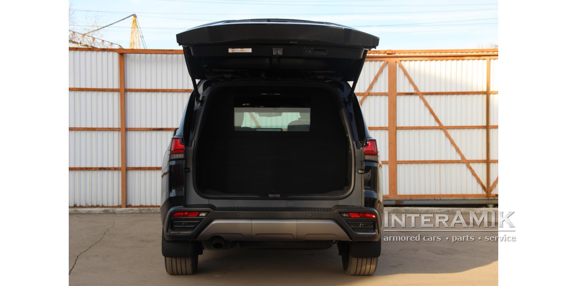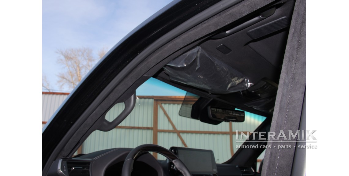 - Броневая защита автомобиля по периметру салона (с перегородкой за вторым рядом сидений)